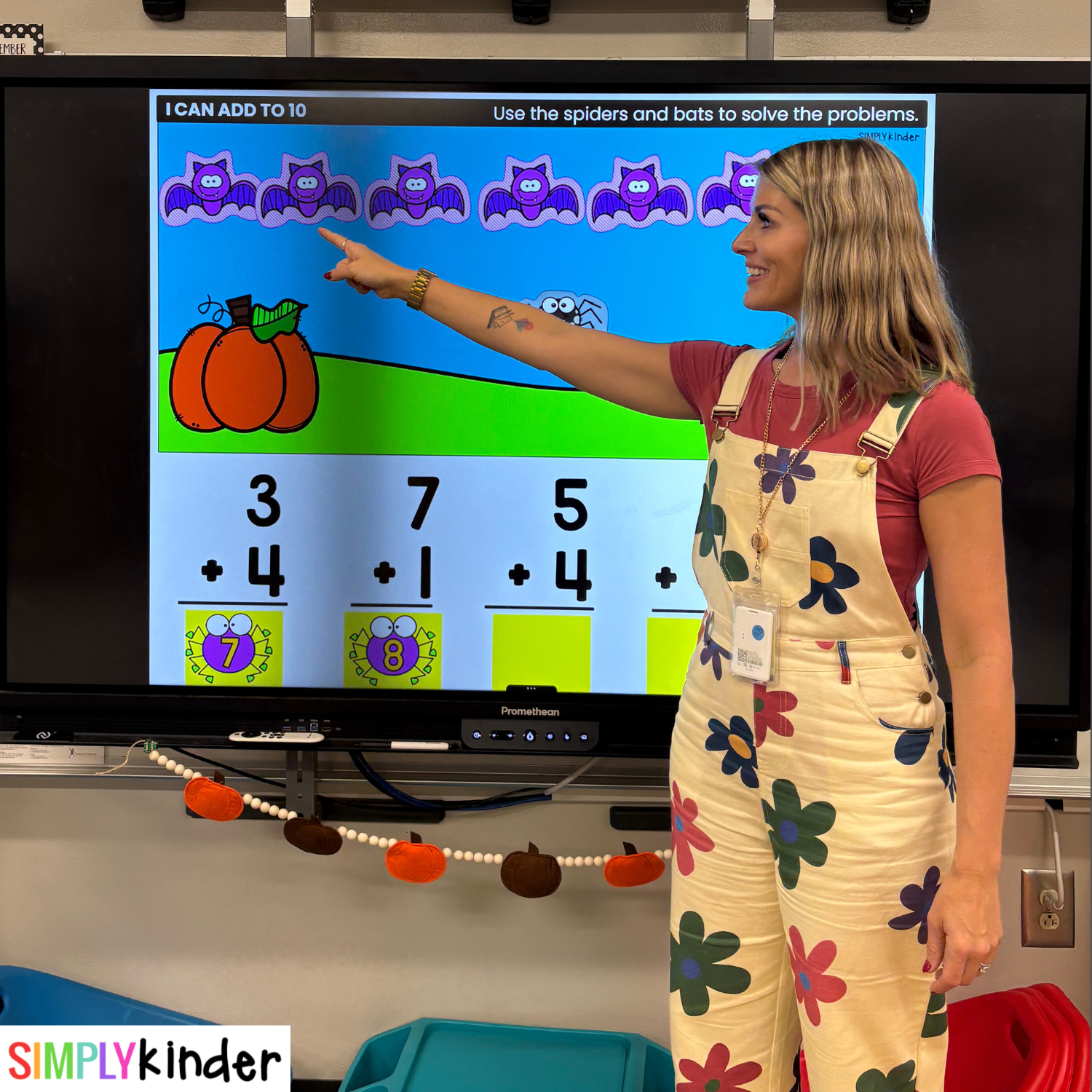 Build addition fluency with Bats & Spiders Digital Addition to 10 from Simply Kinder. Students solve addition facts using interactive pieces. This activity is a great independent activity for Google Classroom or can be done whole group on a smart board.