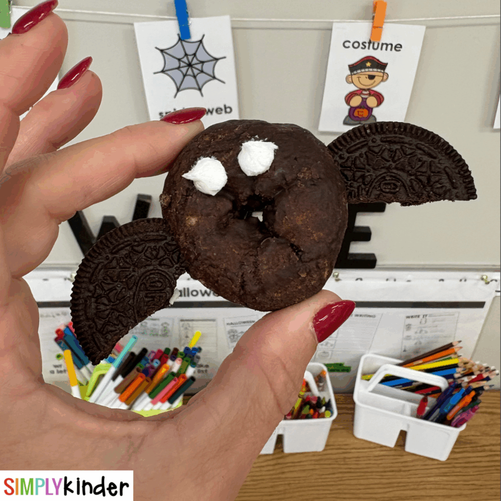 Bat day isn’t complete without a yummy treat! Students use mini chocolate donuts, Oreos, and white icing to create an edible masterpiece.