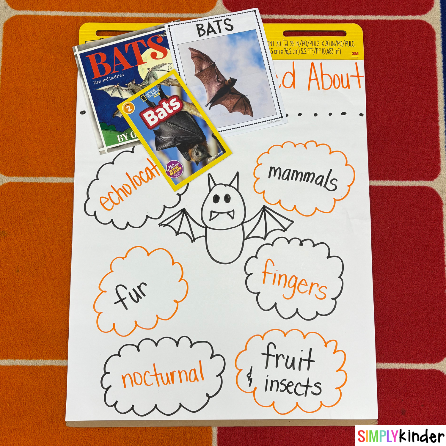 After reading, create an anchor chart titled “What We Learned About Bats” and record facts that students learned about bats.