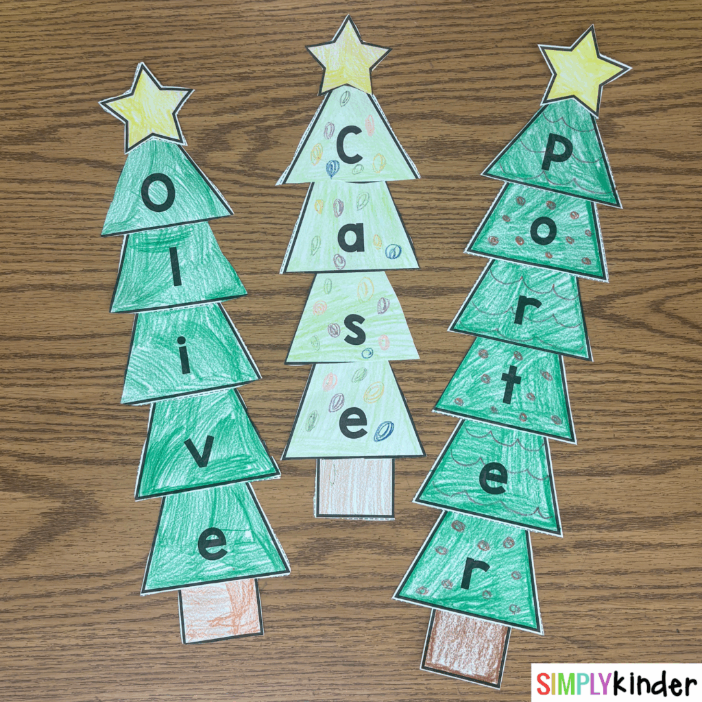 Students build a Christmas tree using the letters in their name with this festive craft. This craft is editable and can be used to practice many skills beyond names (letters, math facts, CVC words, etc.). Build your own Christmas tree farm once these are completed.