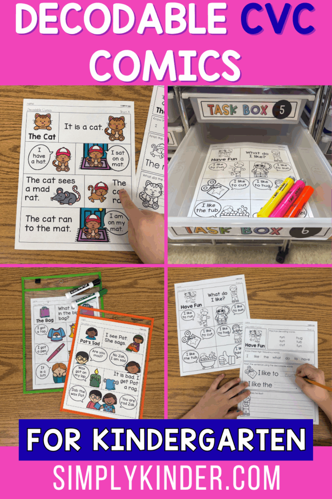 Decodable CVC comics are designed to support early readers as they practice short vowel words in a fun, meaningful way. With simple sentences, familiar patterns, and kid-friendly illustrations, students can focus on decoding instead of guessing. Grab your Decodable CVC Comics from Simply Kinder + HERE!