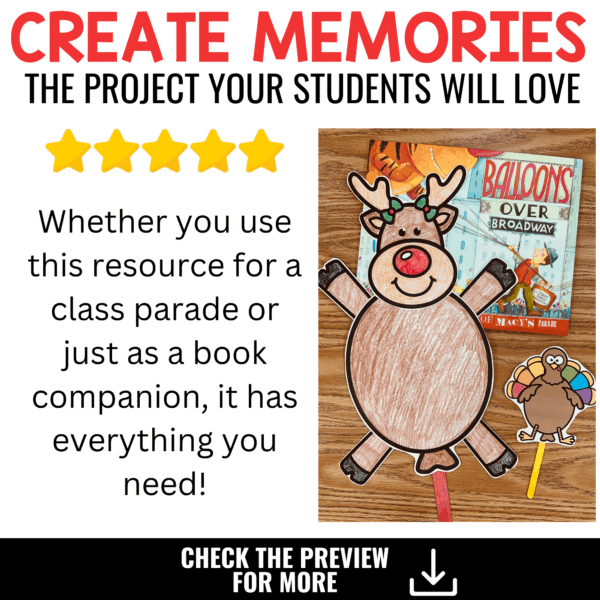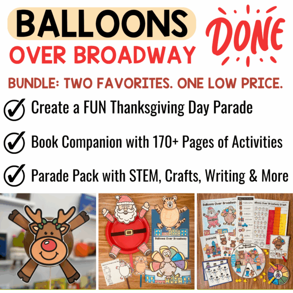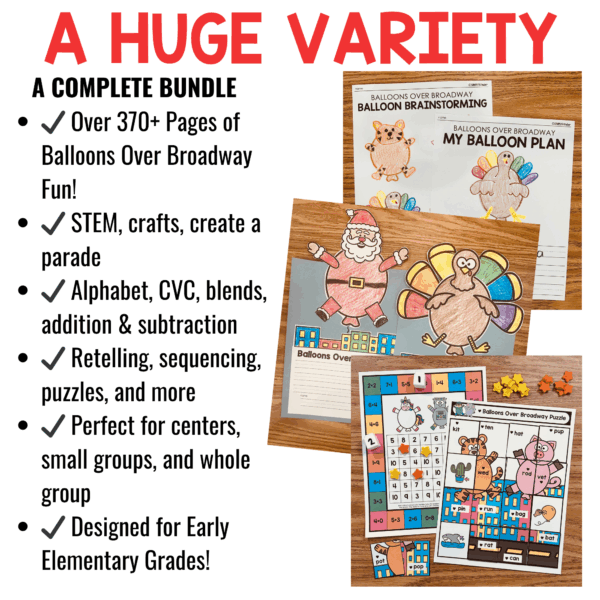 Start your week by reading Balloons Over Broadway, then dive into themed centers, writing prompts, and STEM activities. Finish with a class parade where students proudly show off their balloon creations and costumes. This bundle gives you everything you need to spark curiosity, creativity, and critical thinking all week long.