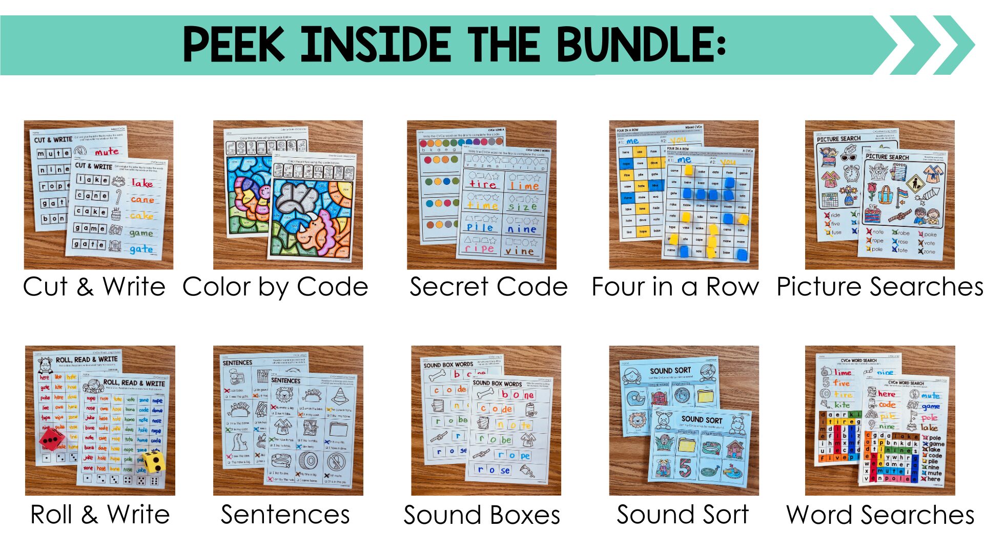 This bundle features 10 interactive CVCe word activity sets designed to strengthen decoding and spelling skills: