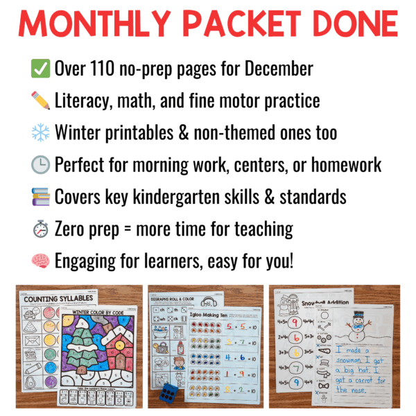This January pack is just one part of the Growing Kindergarten Bundle, which includes a new themed set for every month! Grab the full bundle here now to save big and get over 1,000+ pages of no-prep resources for the entire school year.