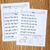 Passage with Picture, warm up words, picture, prompt to read it three times, and a place to write a sentence