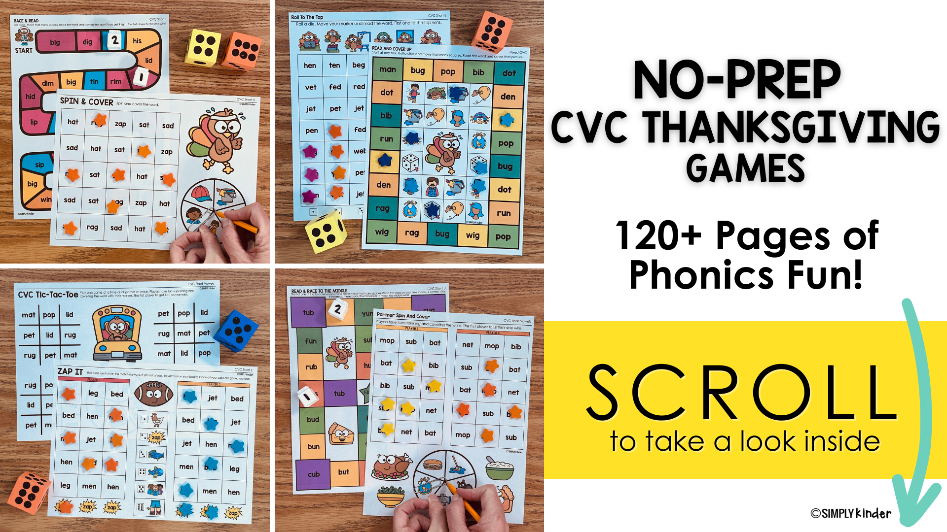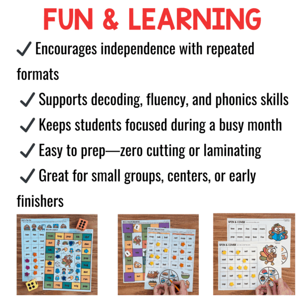 Pair these games with our Thanksgiving CVC Worksheets for a complete no-prep literacy solution—or grab the Thanksgiving Activities Bundle for even more holiday learning fun!