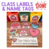 Each themed set comes with Editable Name Tags and Labels and three graphic options to pick from for each. The name tags have 2 sizes and the labels have 3 sizes/styles to pick from. Just program in the student names once and it will pull them through all of the name tags and labels.
