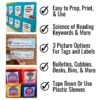 Three different formats of Labels are included for all of your classrooms. Each format has three image options as well. These are great for desks, book bins, cubbies, pencil boxes, anchor charts, folders, bulletin boards, and so much more!