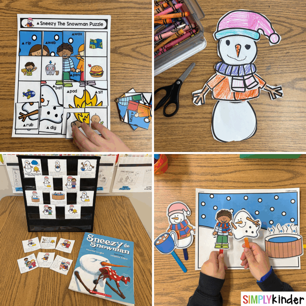 You can easily plan a whole day around this book companion. Incorporate reading comprehension, writing, math, centers, and crafts into your day after enjoying this favorite winter read aloud. Simply Kinder’s Sneezy the Snowman book companion has everything you need for a day full of snow activities. Check out the entire Sneezy the Snowman book companion collection at Simply Kinder + HERE!