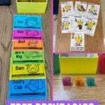- Blending Cards – Use Simply Kinder’s Decoding Cards found HERE or notecards to create binder rings of decodable words. Build a set for each new skill you cover. Students can use fun pointers to practice decoding and blending words. Let your blending sets grow and place them in an easy-to-access place so students can practice blending and build fluency all year long!